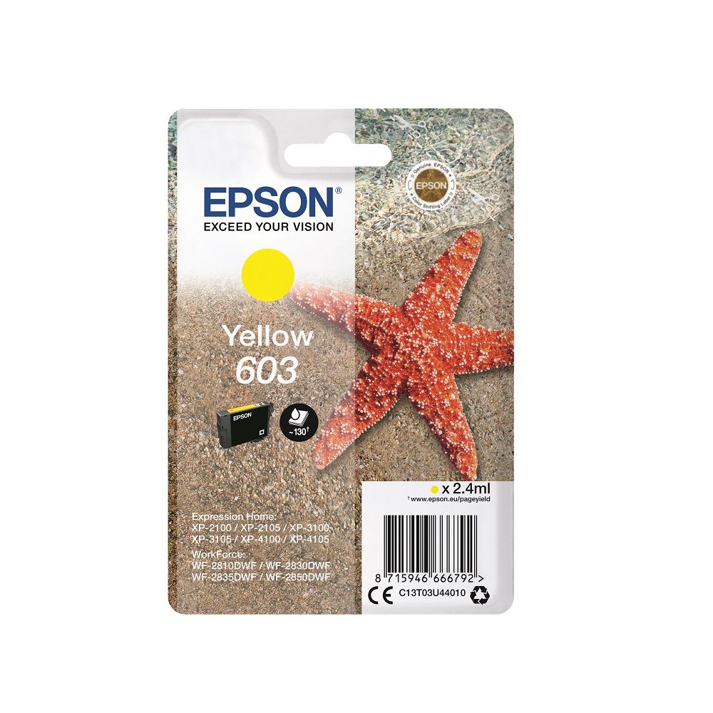 Cartucho de tinta Amarillo 603 (130 copias). Compatible con los modelos Expression Home XP-2100, XP-2105, XP-3100, XP-3105, XP-4100 y XP-4105 y los modelos Workforce WF-2810DWF, WF-2830DWF, WF-2835DWF y WF-2850DWF